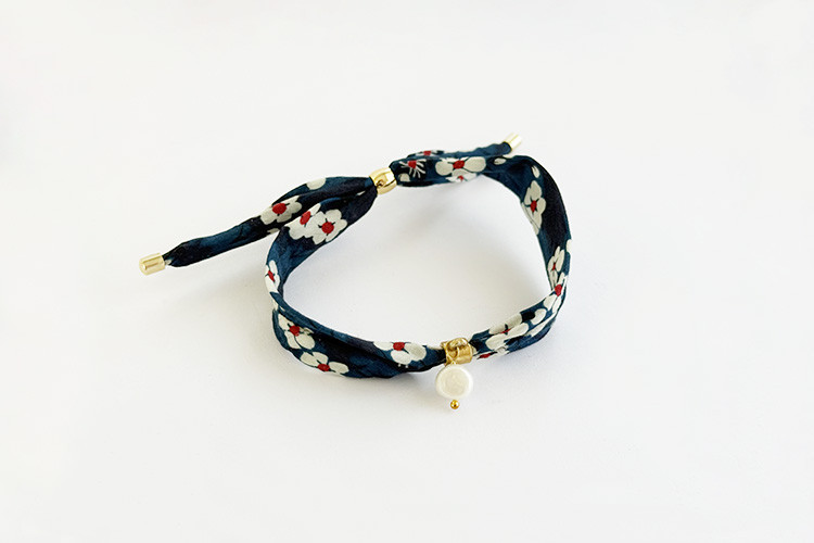 El braçalet “Queen” és una peça artesanal elegant i amb caràcter. Elaborat amb roba d’estampat blavós i una perla cultivada com a protagonista, incorpora una boleta inoxidable banyada amb or de 18k que li aporta un toc sofisticat i atemporal. Fet a mà per les persones de l’entitat, aquest complement combina disseny, delicadesa i valor social. Ideal per regalar o per donar un toc únic al teu estil.