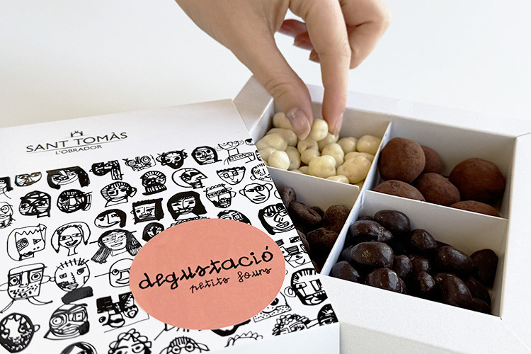 Caixa degustació petita elaborada un a un, amb molta cura i artesanalment al nostre obrador, on trobaràs 50 g de petits fours de cada una de les varietats següents: