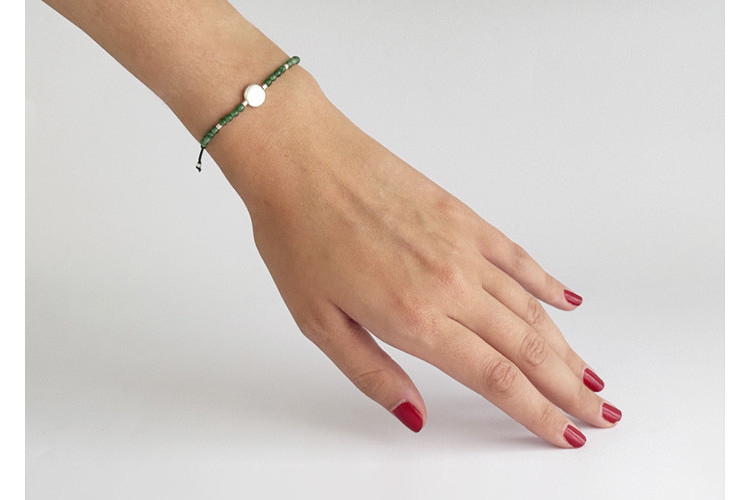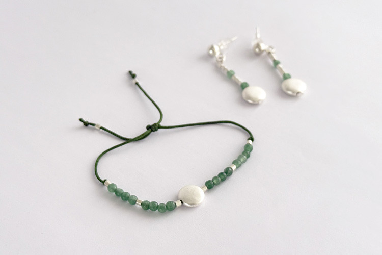 Elegància i sensibilitat es donen la mà en aquest conjunt artesanal, elaborat per les persones de la nostra entitat. Inclou un braçelet i unes arrecades fetes amb pedres naturals d'àgata, fil de niló verd i peces de plata mate. Amb una combinació delicada de tons verds i plata, aquest conjunt aporta un toc de llum i estil a qualsevol ocasió.