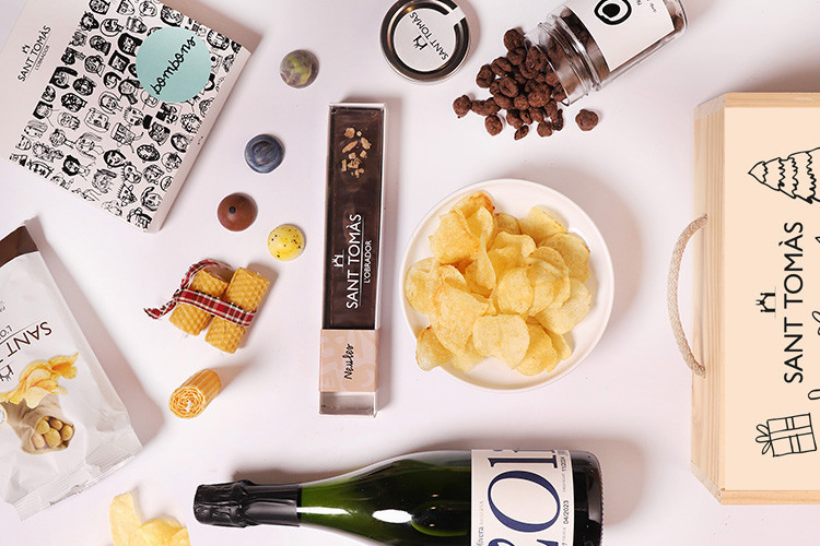 El lot es presenta en una elegant caixa de fusta de pi massís amb tapa corredissa, decorada amb il·lustracions creades per les persones de Sant Tomàs.