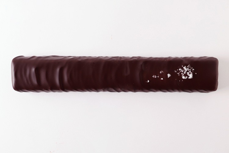 Ingredients: Praliné d’Ametlla (54%) (Ametlla, sucre), cobertura de xocolata negra [(pasta de cacau, sucre, mantega de cacau, cacau desgreixat en pols, emulgent: lecitina de gira-sol i aroma natural de vainilla). Cacau: mínim 64%], xocolata amb Llet [(sucre, mantega de cacau, Llet desnatada en pols, pasta de cacau, sèrum Làctic en pols, matèria grassa Làctia, Llet sencera en pols, emulgent: lecitina de Soja, aroma natural de vainilla i aroma). Cacau: mínim 38%], blat de moro fregit (12%) (blat de moro, oli de gira-sol i sal marina), mantega de cacau, sal marina, emulgent (lecitina de gira-sol).