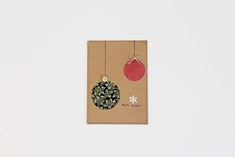 Postal navideña artesanal cosida con bolas
