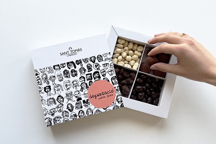 Caja de degustación pequeña elaborada una a una, con mucho cuidado y de forma artesanal en nuestro obrador, donde encontrarás 50 g de pequeños fours de cada una de las siguientes variedades.