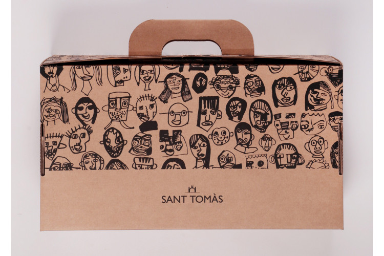 Fabricada con cartón resistente y 100% reciclable, es perfecta para empresas, entidades o particulares que deseen regalar productos solidarios con una presentación cuidada y responsable.