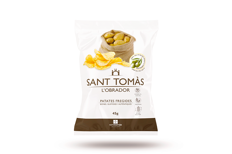Crujientes, doradas y con un sabor auténtico. Nuestras Patatas Originales están elaboradas con delicadeza en L'Obrador de Sant Tomàs, siguiendo el método tradicional y fritas exclusivamente con aceite de oliva virgen de Arbequina y sal del Delta del Ebro. Unas patatas buenas, gustosas y auténticas, que combinan calidad y compromiso social, puesto que han sido hechas por personas con capacidades diversas.